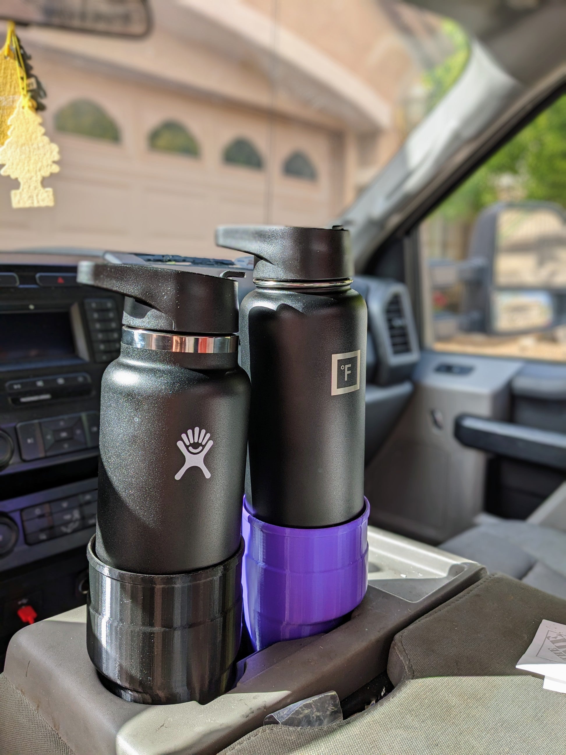 This unique 2x CaddyFlask holder is the perfect companion for your outdoor adventures! Conveniently designed to fit in your vehicle cupholder, the holder is compatible with Hydro Flask, IronFlask, Nalgene, and other 32 oz and 40 oz water bottle brands. Never leave your trusty water bottle behind again - the CaddyFlask is your reliable sidekick!
